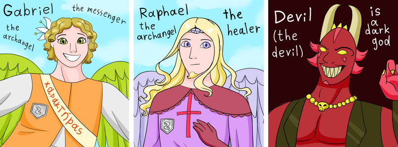 It's the title of my future comic - "Colourful hearts of Heaven and Hell". It is based on a few bible characters, with Jesus as a central figure.⋆౨ৎ˚⟡˖ ࣪Current progress: